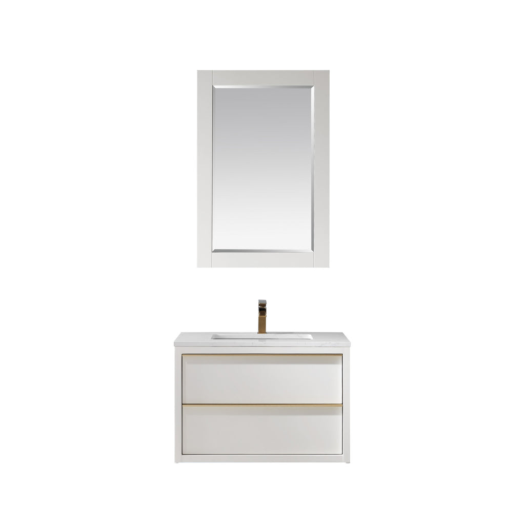 Morgan Single Bathroom Vanity Set in White and Composite Carrara White Stone Countertop