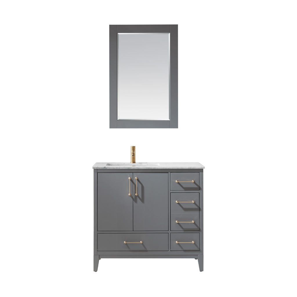 Sutton Single Bathroom Vanity Set in Gray and Carrara White Marble Countertop